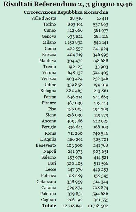 Referendum 2 Giugno 1946 Risultati / Il referendum del 2 giugno 1946 e altro prima e dopo ... : Risultati referendum 2 giugno 1946.